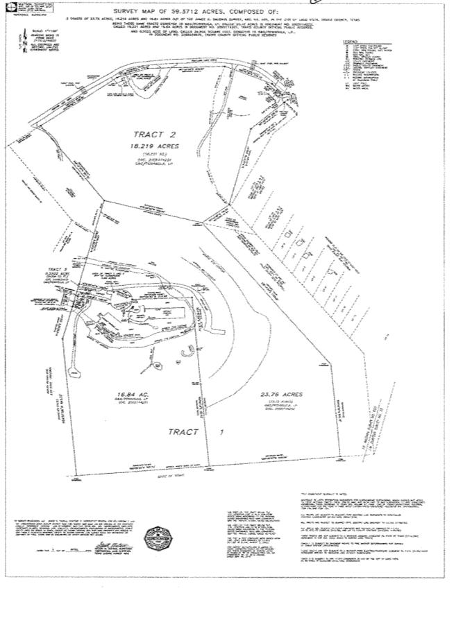 Being that certain tract of land stated to contain 59.3712 acres, more or less, out of the K. BALDWIN SURVEY NO. 600, ABST 90, Travis County, Texas; and out of a portion of Lot 1, AMENDED PLAT OF THE COVE AT LAGO VISTA, a subdivision in Travis County, Texas, according to the map or plat thereof recorded in Volume 87, Page 174C, Plat Records of Travis County, Texas. Said 59.3712 acre tract being more particularly described by metes and bounds in Exhibit “A” attached hereto and made a part hereof.