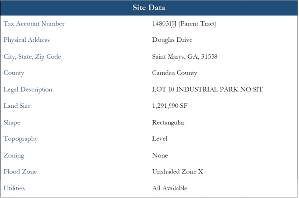 The alternative collateral includes the 29.66 acres of underlying land and entitlements of a Proposed Manufacturing Facility, located in Saint Marys, GA, 31558, Camden County, with a total of 120,000 square feet of gross building area, on 1,291,990 square feet of land with Tax Parcel Number 135C-011.