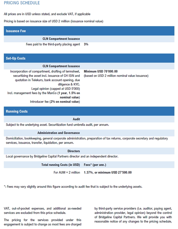| B. | The Issuer intends to issue via the Compartment debt securities under a notes programme, whose the terms and conditions are detailed in a private placement memorandum, the (“Issuance”). |