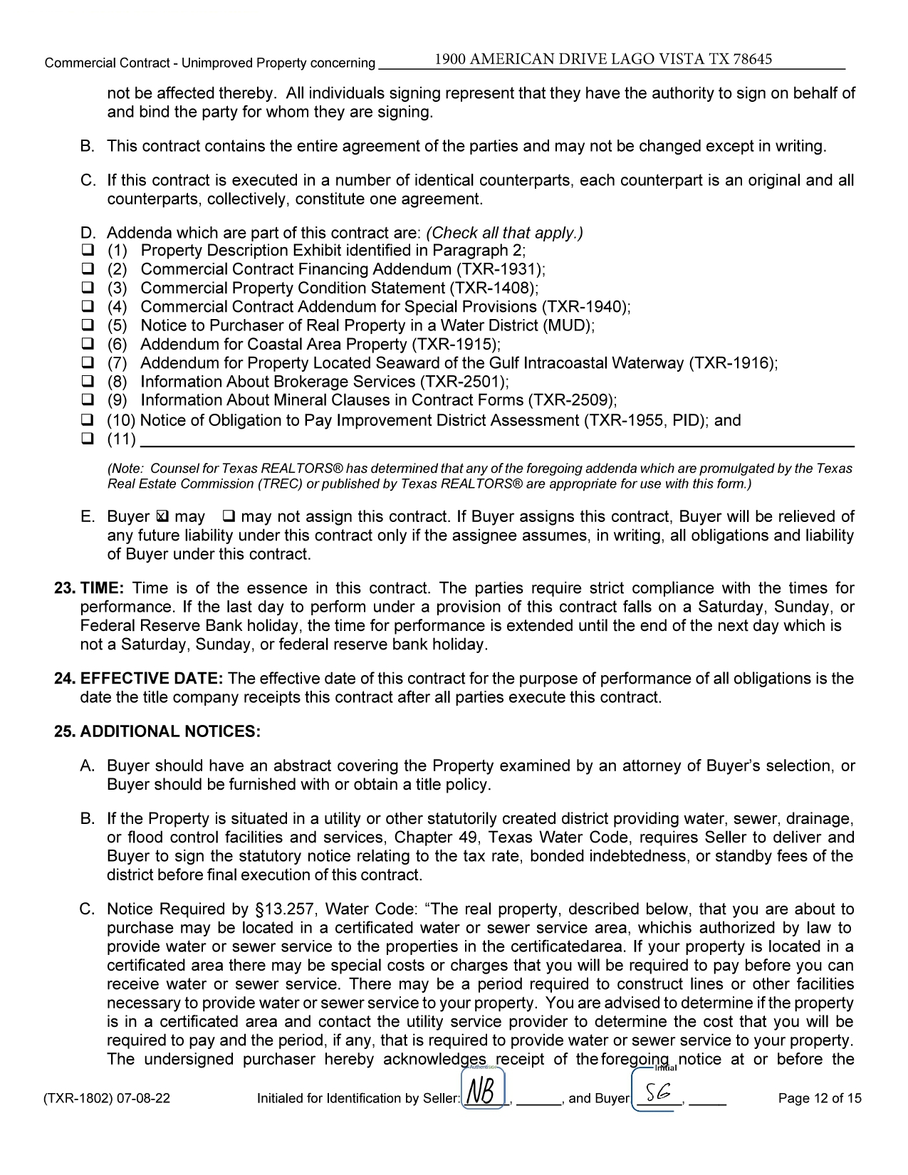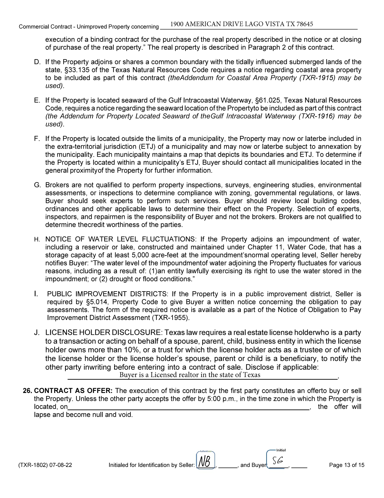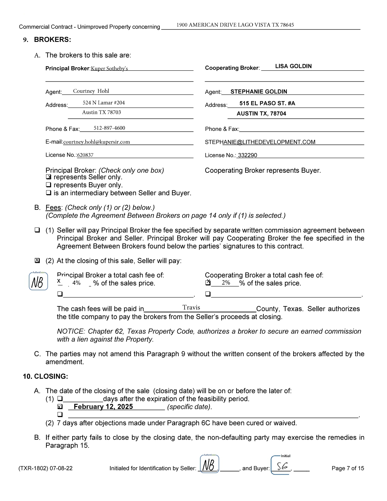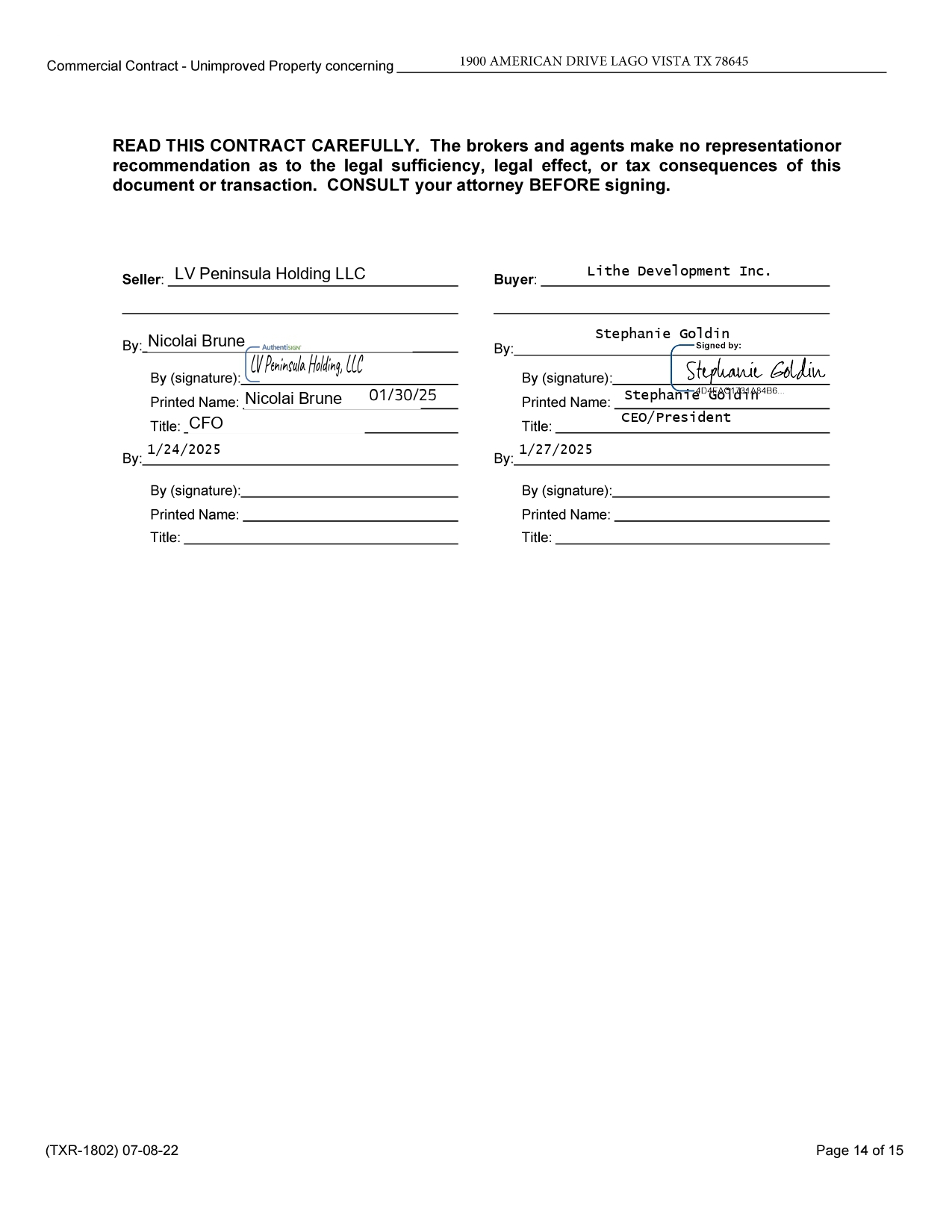 COMMERCIAL CONTRACT BETWEEN LV PENINSULA HOLDING, LLC AND LITHE DEVELOPMENT INC Published on February 5, 2025 Exhibit 10.1